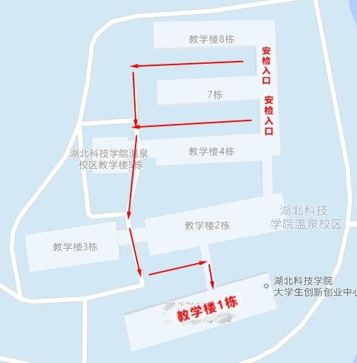 “舞蹈基本功及舞蹈剧目”科目考试地点在我校温泉校区教学楼1栋309舞蹈房,候考准备室在306舞蹈房。下午13:30开始安检,考生通过安检及核验通道后,从候考区可到达教学楼1栋。(行进路线见下图)